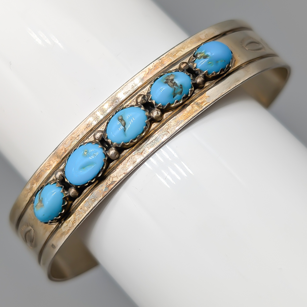 17.5cm Stelt armband i Silver med Turkosa Stenar S925 14.11g