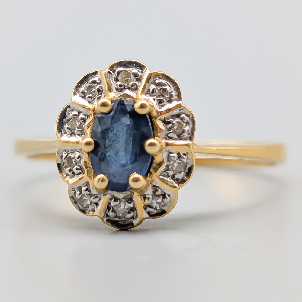 Diamantring i Guld med Safir 18K 2.54g 17.75mm