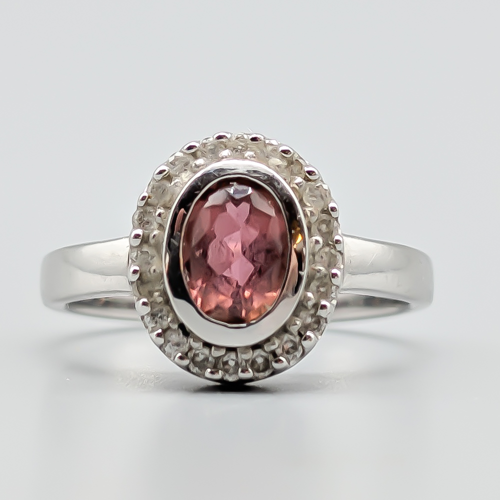 Haloring i Vitguld med Diamanter och Rosa Sten 14K 4.13g 17.25mm
