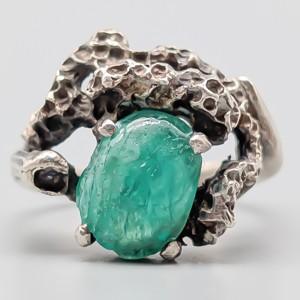 Ring i Silver med Smaragd S925 4.45g 16mm