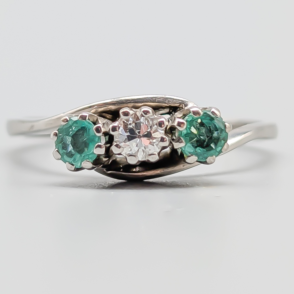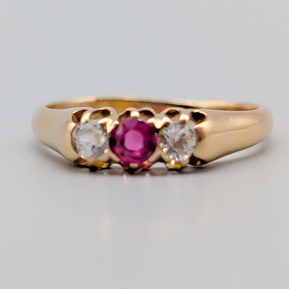 Trestensring i Guld med Röd och Vita Stenar 18K 1.91g 14.75mm