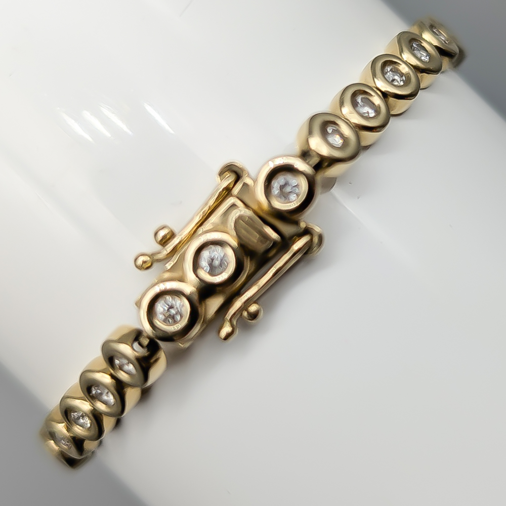 Armband, Guld, 14K, 10.82g, Längd: 18.5cm, Bredd: 4mm, Gott skick. 42 st diamanter om totalt ca 1.00 ct enligt gravyr.