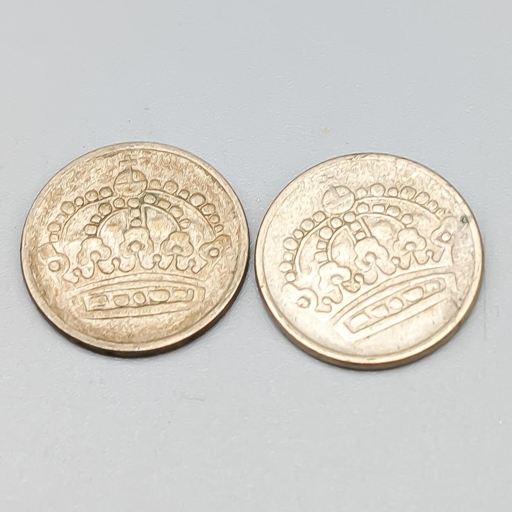 2 st 25 öre Sverige 1957 S400 4.64g 17mm