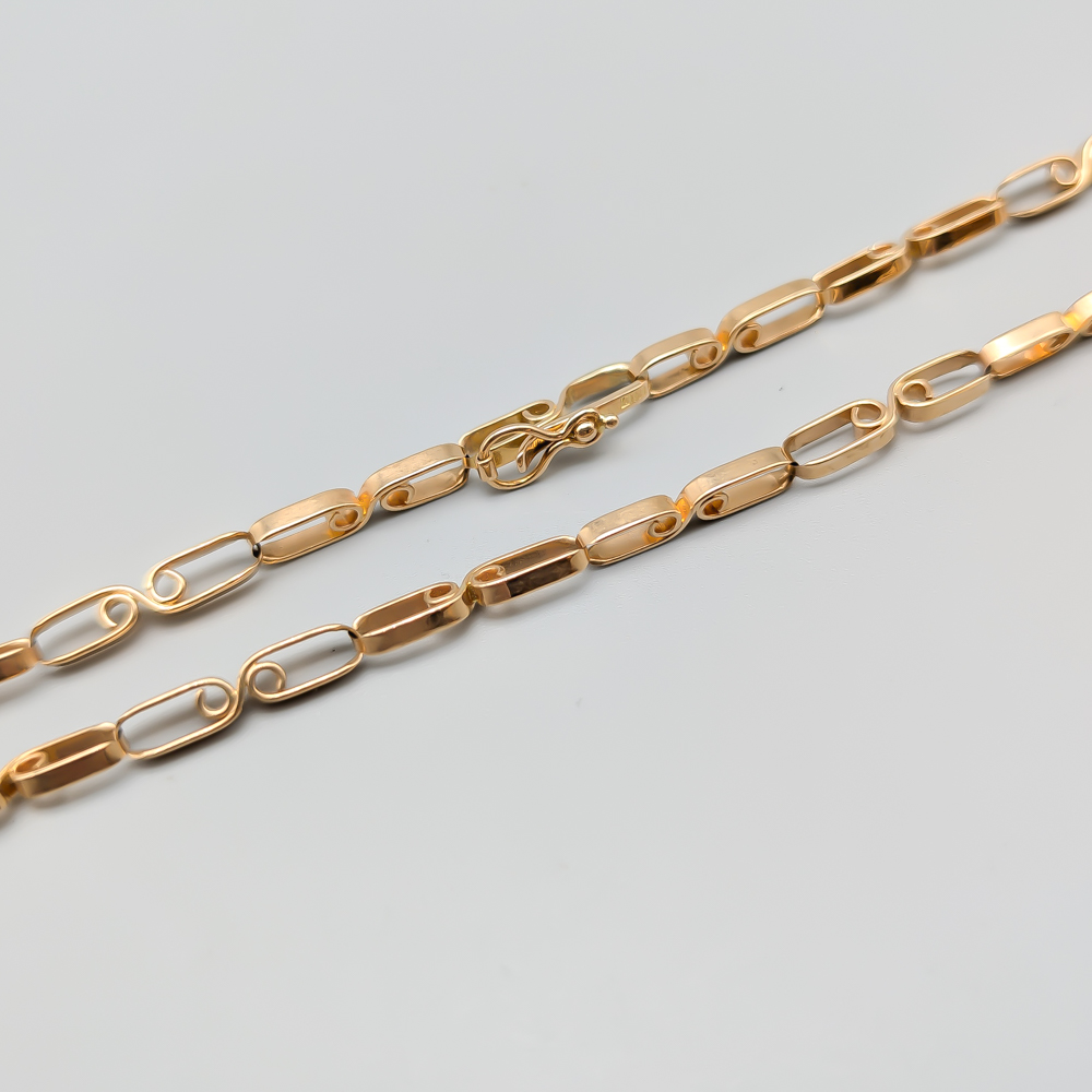 Halsband, Guld, Fantasilänk, 18K, 21.88g, Längd: 49.5cm, Bredd: 4mm, Gott skick. Stämplad: K10 THHV (1984 Silverknappen T. Hvorslev AB)