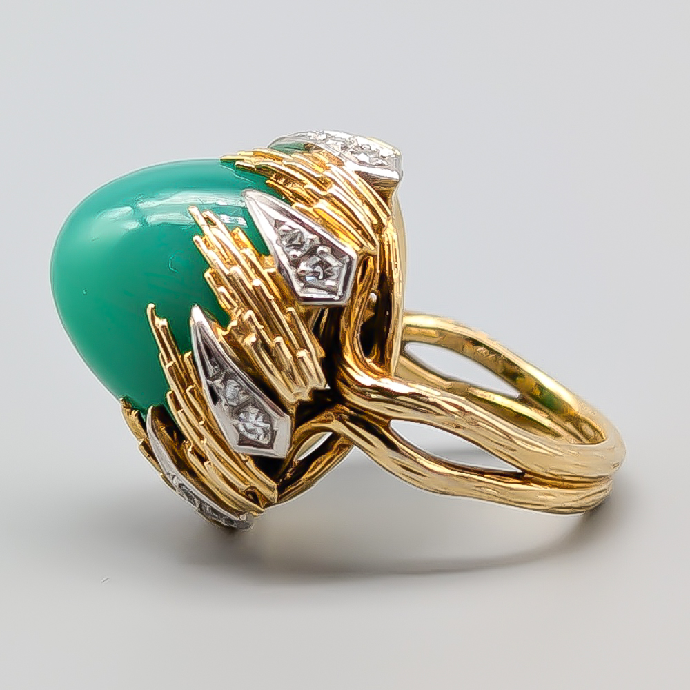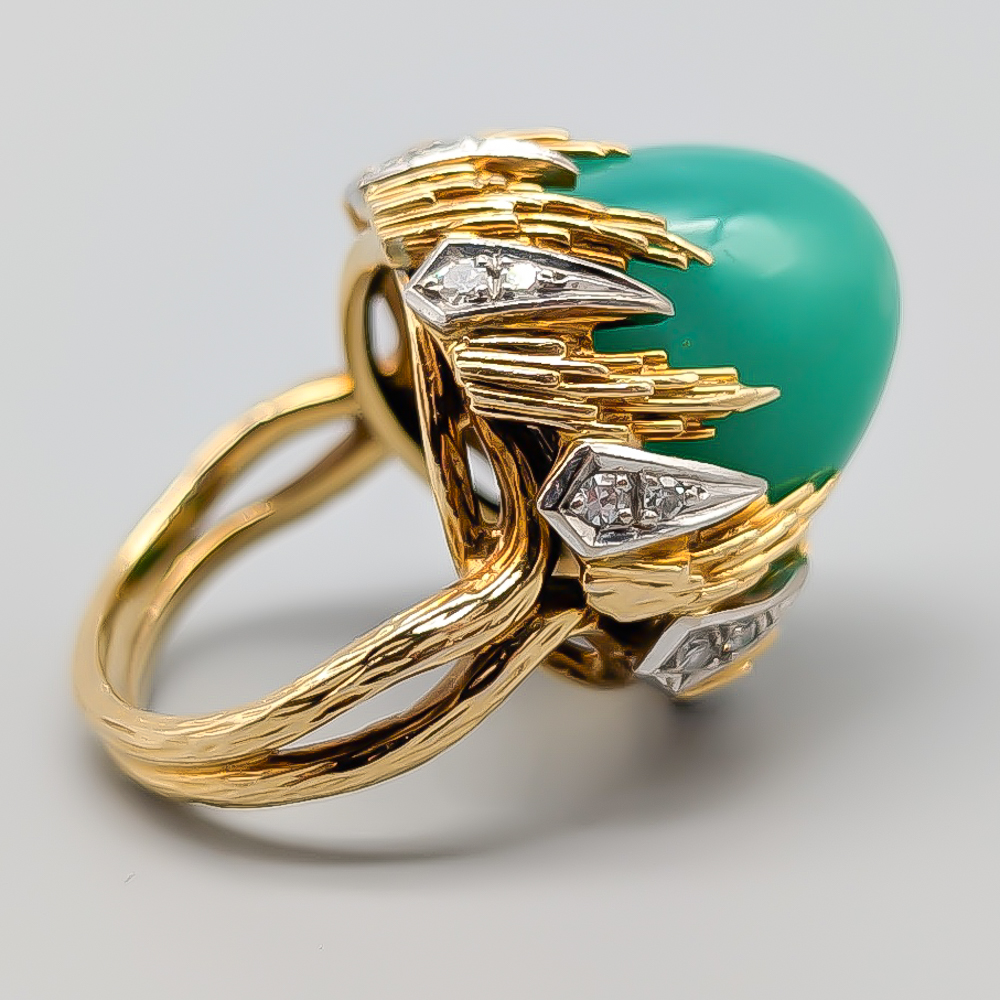 Cocktailring i Guld med Diamanter och Grön Sten 18K 23.05g 16.5mm