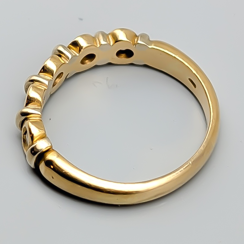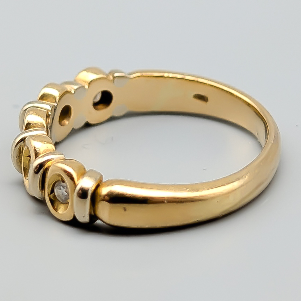 Ring, Guld, 18K, 5.08g (Varav ädelmetall: ca 5.05g), Storlek: 17.5mm, Gott skick. 5 st diamanter om totalt ca 0.10
