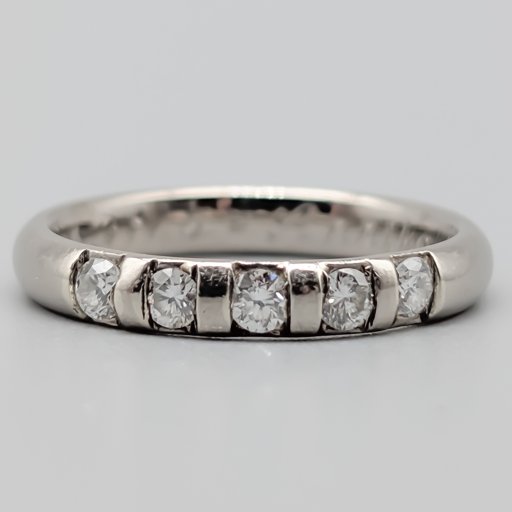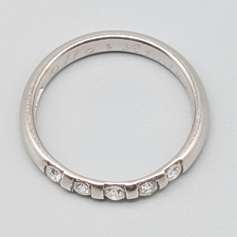 Ring, Guld, 18K, 3.2g (Varav ädelmetall: ca 3.14g), Storlek: 16mm, Gott skick, Innehåller gravyr. Stämplad: GBA. 5 st diamanter om totalt ca 0.30 CT.