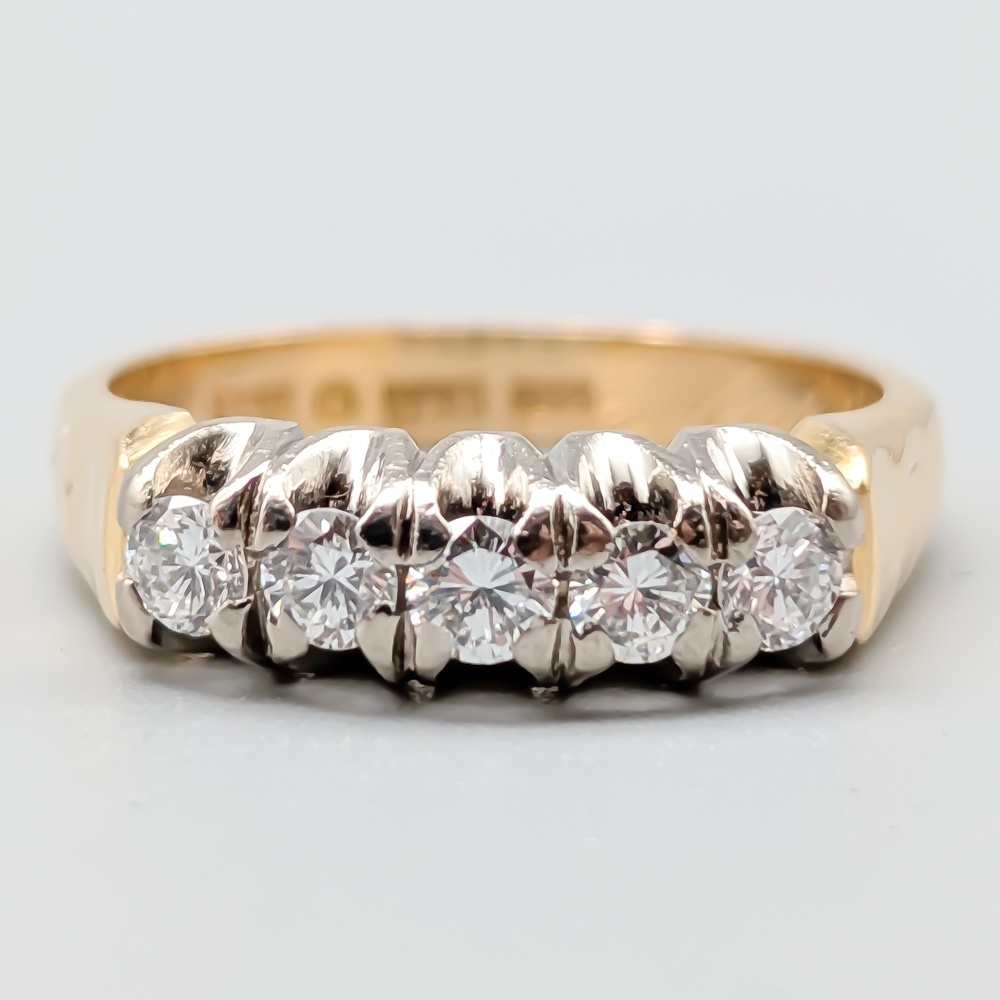 Femstensring i Flerfärgat Guld med Diamanter 18K 4.37g 15.75mm