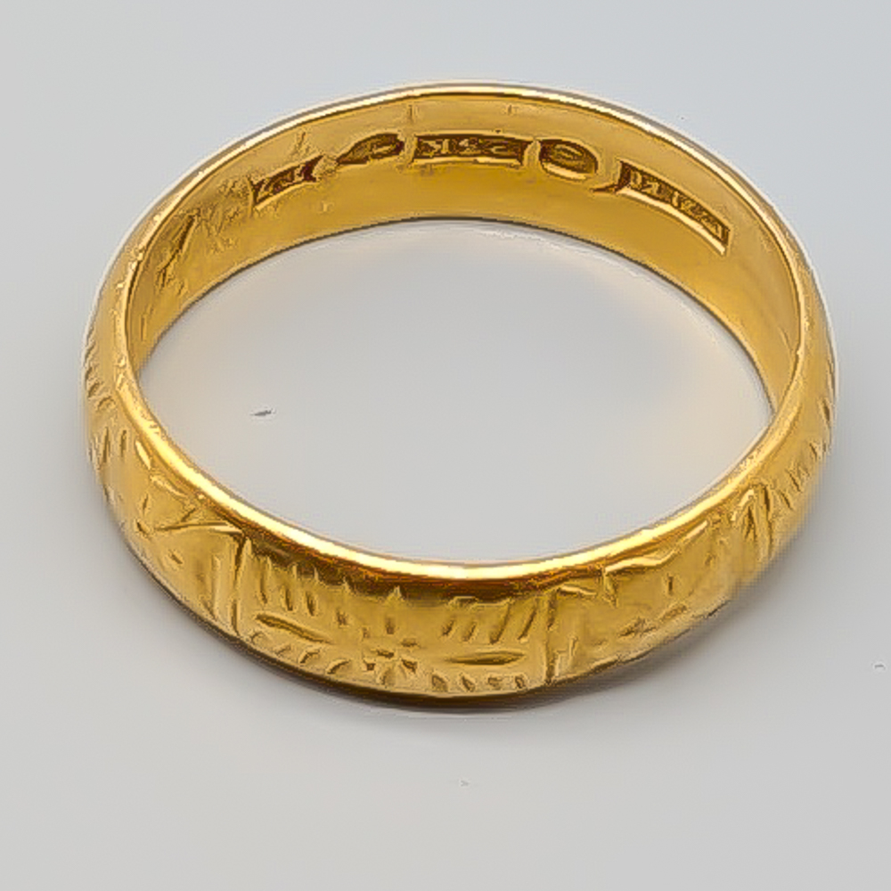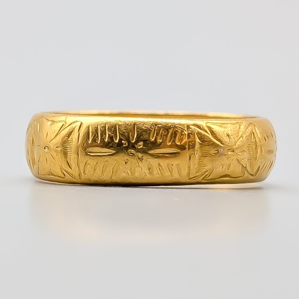 Ring, Guld, Mönstrad ring, 23K, 5.46g, Storlek: 18mm, Vintage. Stämplad: E7 CEH (1907 )