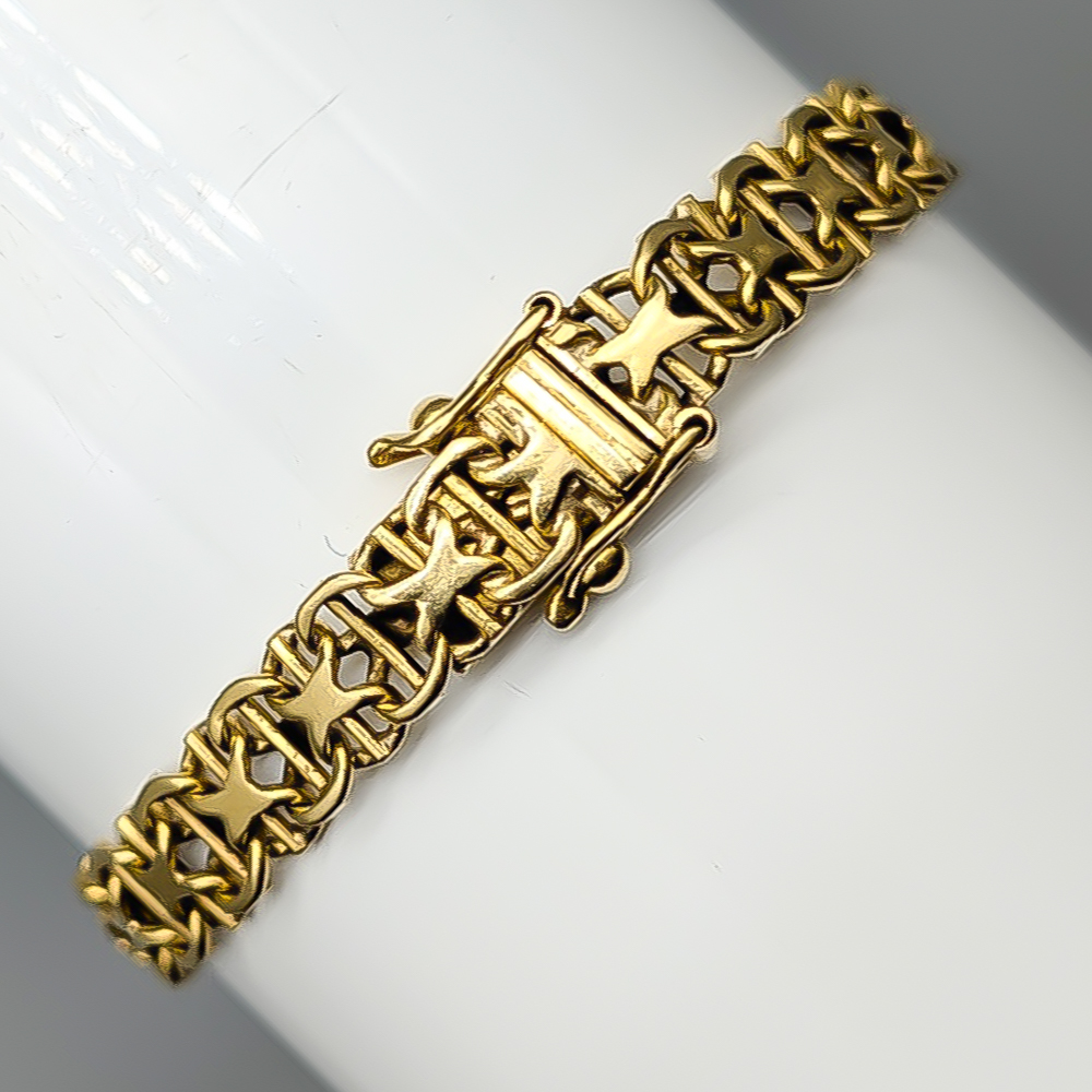 Klocka, Guld, 18K, 18.76g (Varav ädelmetall: ca 15.37g), Längd: 17.5cm, Bredd: 17mm, Gott skick, Ej funktionstestad. Stämplad: FE