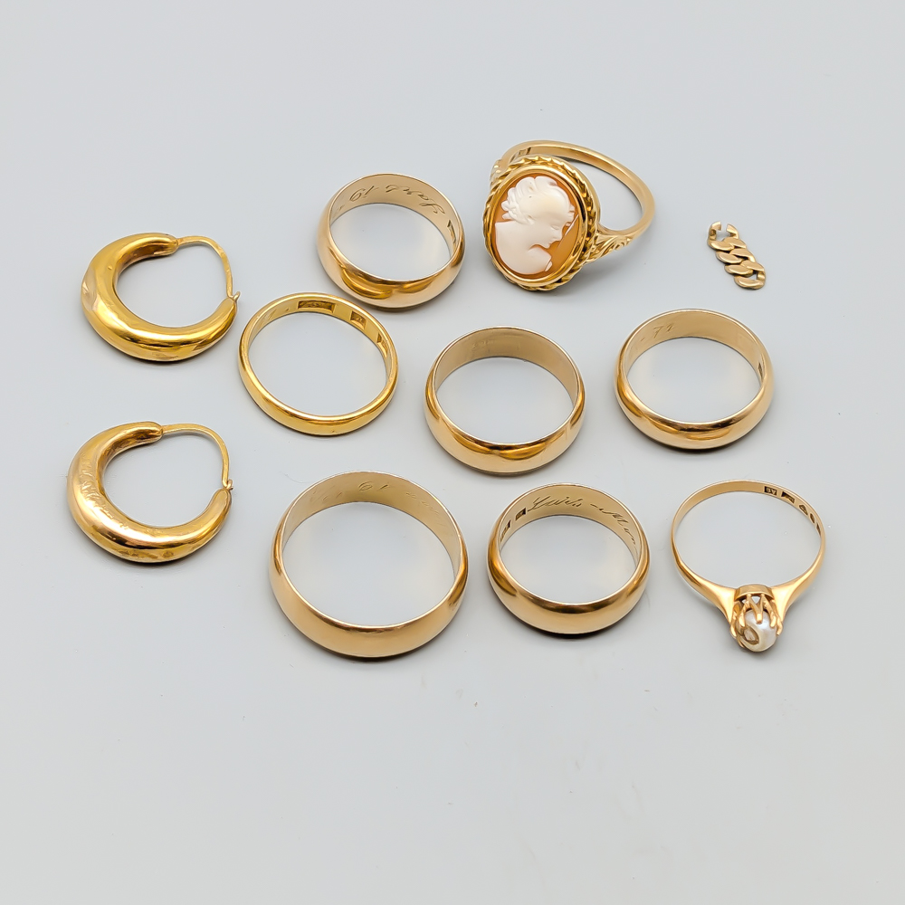 Skrotguld & Silver, Guld, 18K, 36.96g (Varav ädelmetall: ca 35.76g), Trasig, Innehåller gravyr.