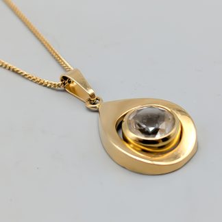43cm Venezialänk i Guld med Hänge med Vit Sten 18K 3.71g